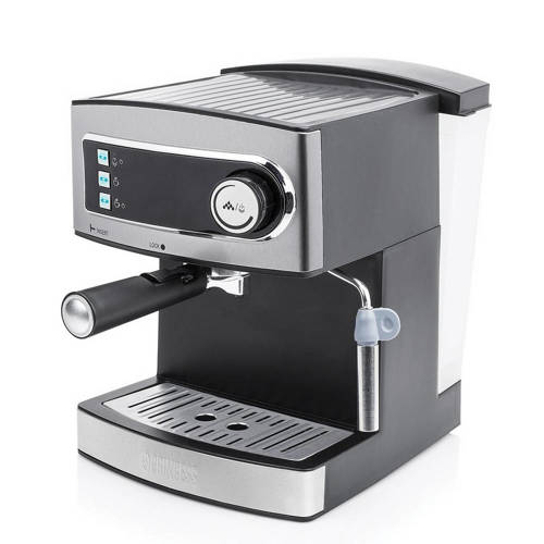 Met deze Princess 249407 espressomachine maakt jij een verse espresso en met het stoompijpje kun je tevens een heerlijke cappuccino, latte macchiato of espresso macchiato maken. De Princess 249407 espressomachine heeft een afneembaar waterreservoir met een inhoud van 1,6 liter en een pompdruk van 15 bar. Tevens beschikt deze espressomachine over een warmhoudplaat voor kopjes en een heet water functie.Specificaties- Vermogen: 850 Watt- Voltage: 220-240 Volt- Pompdruk: 15 bar- Inhoud uitneembare waterreservoir: 1,6 liter- Waterniveau indicator- Geschikt voor gemalen koffie- Heet water funtie- 2 uitlooppijpjes- Cappuccino stoompijpje- Warmhoudplaat kopjes- Aan/uitschakelaar met indicatielampjes- Warmhoudfunctie- Kleur: rvs/zwart- Garantietermijn: 2 jaarAfmetingen en gewicht- Afmetingen (hxbxd) 35x26x30 cm- Gewicht: 3 kg
