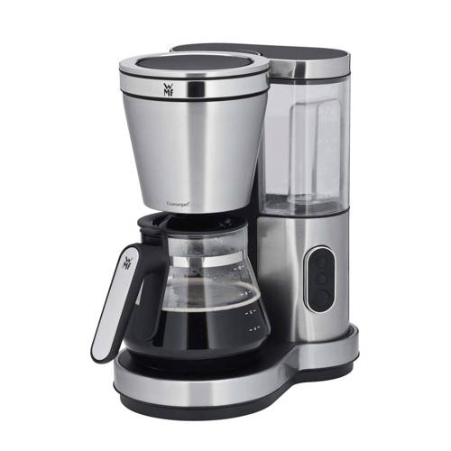 Lono koffiezetapparaat met glazen kanMaak heerlijk verse koffie met de WMF Lono. De behuizing is robuust, stijlvol en gemaakt van duurzame Cromargan 18/10 roestvrij staal. Begin elke dag met een heerlijk kopje koffie voor jou en de rest van het huis! Het compacte en aantrekkelijke WMF filter koffiezetapparaat met Cromargan behuizing en een glazen kan voor 10 kopjes van 125 ml brouwt precies de juiste hoeveelheid voor kleine en grotere gezelschappen. Het waterreservoir is afneembaar, BPA vrij en heeft een zichtbare waterniveau-indicator zodat je precies ziet hoeveel kopjes koffie je kan zetten. Het uitneembare filter is gemakkelijk schoon te maken, heeft een druppelstop én overloop beveiliging. Daarnaast blijft je koffie warm dankzij de warmhoudplaat die automatisch stopt zodra de koffie op is. Leun achterover en geniet van de aromatische warme koffie vanaf het eerste kopje.Kenmerken:- Stijlvol ontwerp gemaakt van hoogwaardig Cromargan 18/10 roestvrij staal- Capaciteit 1,25 liter (8 kopjes per keer van elk 125 ml)- WMF Aroma Perfection voor aromatische koffie vanaf het eerste kopje- Het verwarmingssysteem kan een temperatuur tot 95 C bereiken om zo een intense koffiesmaak te creëren- Verwijderbare watertank, BPA vrij- Zwenkfilter voor het makkelijk bijvullen van koffie met druppelstop en overloopbeveiliging- Zichtbare waterniveau indicator- Warmhoudplaat met automatische uitschakeling- Zichtbare waterniveau-indicator- 1000 watt vermogen