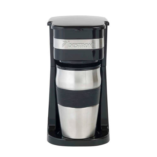 Handig Bestron ACM111Z 1-persoons koffiezetter met RVS design-elementen. Dank zij de uitneembare RVS drinkbeker kun je zelfs je eigen beker koffie mee nemen in de trein of auto. De capaciteit van deze beker is genoeg voor 2 flinke koppen koffie - ca. 420ml. De filterhouder met permanentfilter is uitneembaar en is ook met papierfilter 101 te gebruiken. De koffiezetter schakelt zichzelf uit nadat de koffie gereed is. De waterniveau indicator en de koffiezetter zijn eenvoudig schoon te maken. Het vermogen is 750 watt, kleur zwart/rvs. Afmeting hxbxd: 26x16x20