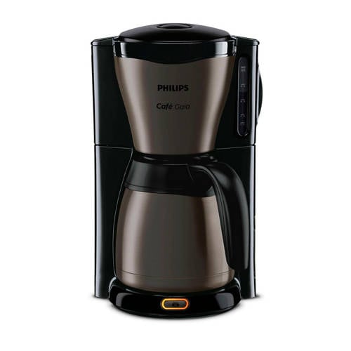 Heerlijke, hete koffie uit ons iconische design Het Café Gaia koffiezetapparaat zet koffie van uitstekende kwaliteit. De thermische kan houdt het volledige aroma en de temperatuur van de koffie ruim 2 uur vast. Dankzij het titanium design is dit een hoogwaardig en stijlvol koffiezetapparaat. Dit Philips HD7547/80 Café Gaia-koffiezetapparaat heeft een onbreekbare rvs thermische kan met dubbele wand, met een inhoud van 1.2 liter. DeHD7547/80 met een vermogen van1000 Watt is voorzien van een druppelstop, een auto-off functie en een kabel opslag.RVS thermische kanDe luxe, onbreekbare roestvrijstalen thermische kan houdt het volle aroma en de temperatuur meer dan 2 uur vast. Dankzij het dubbelwandige ontwerp is de koffie na 2 uur nog minstens 65 °C. De thermische kan is uitgerust met een slimme vergrendeling die eenvoudig kan worden bediend. De vergrendeling zorgt ervoor dat het aroma en de temperatuur volledig behouden blijven wanneer de kan uit het koffiezetapparaat wordt gehaald.Slim slot op thermische kanDe thermische kan is uitgerust met een slimme vergrendeling die eenvoudig kan worden bediend. De vergrendeling zorgt ervoor dat het aroma en de temperatuur volledig behouden blijven wanneer de kan uit het koffiezetapparaat wordt gehaald.Titanium ontwerpHet koffiezetapparaat is gemaakt van titanium gekleurd metaal, voor een stijlvolle en hoogwaardige uitstraling. Een subtiele blikvanger in uw keuken.Rijke koffiesmaakDankzij de geconcentreerde waterstroom die op de koffie wordt geschonken, wordt de optimale smaak uit de gemalen koffie verkregen.DruppelstopMet de druppelstop kun je een kopje koffie schenken voordat de koffie volledig is gezet.Wordt automatisch uitgeschakeld30 minuten na het zetten van uw koffie, wordt het koffiezetapparaat automatisch uitgeschakeld om energie te besparen en voor de veiligheid. De thermische kan zorgt ervoor jouw koffie warm blijft.KabelopslagResterende kabellengte kan worden opgeborgen in het kabelcompartiment onder het koffiezetapparaat. WaterniveauaanduidingVul het waterreservoir gemakkelijk en nauwkeurig met de waterniveau-indicator.