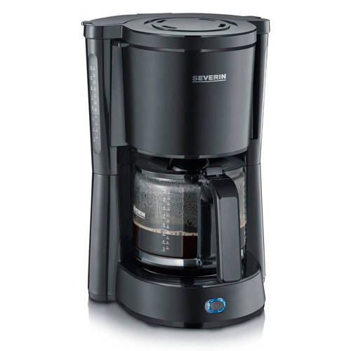 Dit Severin KA9554 koffiezetapparaat, in de kleur zwart, heeft een vermogen van 1000 Watt en een capaciteit voor van 1,25 liter wat goed is 10 kopjes koffie per keer.