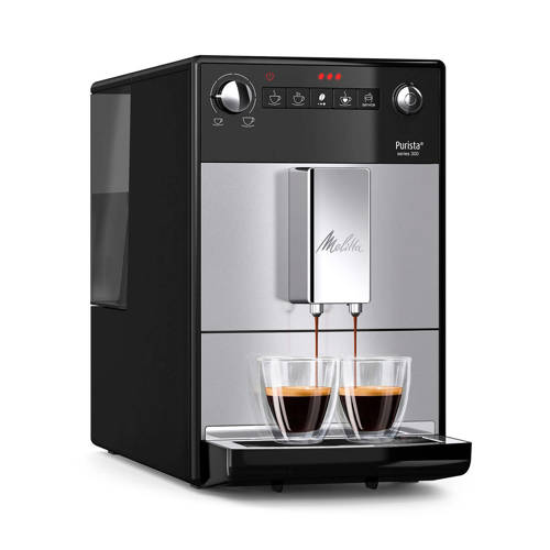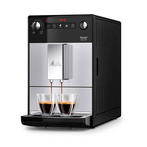 Met deze Melitta Purista koffiemachine maak jij eenvoudig echt lekkere koffie. De Purista® is een van de smalste volautomatische koffiemachines (slechts 20 cm) ter wereld. Zelfs het beste ontwerp kan echter pas imponeren als het gepaard gaat met uitstekende eigenschappen. En dat is duidelijk zo bij de Purista®, met zijn moderne frontpaneel, grote geïntegreerde knoppen en grote draaiknop voor eenvoudige bediening. Het nieuw ontworpen lekbakje is voorzien van een druprooster in roestvrij staal en gemaakt van kwaliteitsvol, krasbestendig plastic. Weet jij wat je lekker vindt? Programmeer je favoriete koffiesterkte en hoeveelheid op eenvoudige wijze. Daarna hoeft je alleen nog maar op de favoriete koffieknop te drukken. De rest wordt gedaan door uw volautomatische espressomachine.Dankzij het LED-kleurendisplay met rode symbolen is de koffiemachine eenvoudig te bedienen. En met de Melitta Purist koffiemachine kun je koffie zetten in alle rust dankzij de fluisterstille molen, die bovendien ook bijzonder snel is. En met de in hoogte vestellbare 2 afzonderlijke pijpjes kun je, je favoriete drank bereiden zonder je kopje te verplaatsen en is er voor de wat hogere kop ook nog plaats genoeg. Pro Aqua filtertechnologieAls je een Melitta Pro Aqua waterfilter gebruikt, smaakt je koffie nog beter. Het gefilterde water verbetert niet alleen de kwaliteit en smaak van jouw koffie, maar voorkomt ook dat kalkaanslag zich ophoopt in het watersysteem. (Dit is gebaseerd op zes kopjes koffie van 120 ml per dag en zes filters per jaar.)Automatische reiniging en ontkalkingAlles begint met een goede communicatie. Uw volautomatische koffiemachine laat je via het display weten wanneer het tijd is voor een reinigings- of ontkalkingsbeurt.