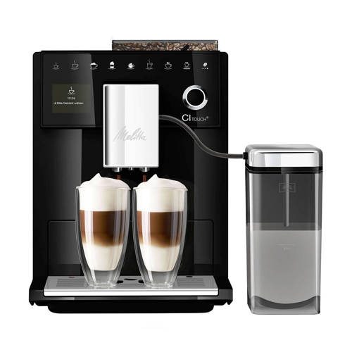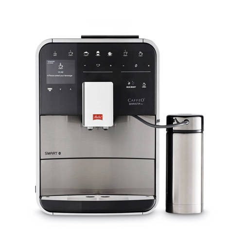 Met deze Melitta BARISTA F860-100 TS Smart koffiemachine maak jij eenvoudig lekkere koffiespecialiteiten zoals bij voorbeeld Americano, Café Lungo, Cappuccino, Espresso, Espresso Doppio, Espresso Macchiato, Flat White, Koffie, Latte (Koffie verkeerd), Latte Macchiato, Ristretto, Melkschuimportie, Heet water, Café Crema. Dit met de juiste koffiebonen en volgens het originele recept of jouw eigen persoonlijke creatie.Dankzij het TFT-kleurendisplay met hoge resolutie is de koffiemachine eenvoudig te bedienen. Tevens kun je dankzij de Melitta Connect app met je mobiele telefoon het bereidingsproces aansturen en nog heel wat andere functies instellen en gebruiken. De molen van jouw volautomatische koffiemachine is supersnel en fluisterstil.Melitta ConnectDankzij de Melitta Connect app kan je met jouw smartphone heel wat functies van jouw volautomatische koffiemachine instellen en gebruiken. Zo kan je de instellingen van de koffiemachine heel gemakkelijk aanpassen en persoonlijke My Coffee-profielen programmeren en opslaan. Handige instructies helpen je bij de reiniging en het onderhoud van jouw koffiemachine. Een opvallende functie van deze app is dat je er jouw eigen koffiespecialiteiten mee kunt creëren.Manuele bonenselectieDe Barista T Smart heeft een bonenreservoir met twee kamers ('Bean Select' genoemd), waarmee je afhankelijk van het recept en jouw persoonlijke smaak bijvoorbeeld milde koffiebonen of sterke espressobonen manueel kunt selecteren. Met de ingebouwde vulkoker kan je bovendien ook reeds gemalen koffie gebruiken.Double Cup-modusDankzij de Double Cup-modus kun je van een groot aantal koffiespecialiteiten twee kopjes tegelijk bereiden, met of zonder melk.My Coffee MemoryMet de functie 'My Coffee Memory' kan je jouw favoriete koffiespecialiteiten individueel instellen. De Melitta BARISTA F860-100 TS Smart ewaart de persoonlijke instellingen van maar liefst 8 personen.Pro Aqua filtertechnologieAls je een Melitta Pro Aqua waterfilter gebruikt, moet je de BARISTA F860-100 TS Smart maar één keer per jaar ontkalken. Het gefilterde water verbetert niet alleen de kwaliteit en smaak van jouw koffie, maar voorkomt ook dat kalkaanslag zich ophoopt in het watersysteem. (Dit is gebaseerd op zes kopjes koffie van 120 ml per dag en zes filters per jaar.)