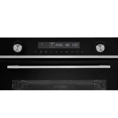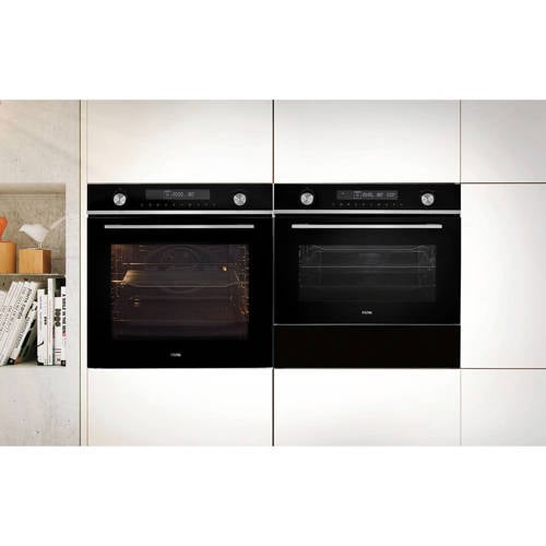 Deze Samsung inbouw bakovenNV70K1340BS/EF met een energieklasse A+ is geschikt voor een nismaat van 60 cm. Hij is voorzien met 2 ventilatoren voor een kortere voorverwarming en optimale garing. Twee in tegenovergestelde richting draaiende ventilatoren verspreiden de hitte gelijkmatig door de oven. Zo worden je gerechten met dezelfde temperatuur en snelheid bereid. De oven heeft een korte voorverwarmtijd en is energiezuinig.De universele oven met een royale inhoud van68 liter heefto.a. de volgende verwarmingssystemen Bovenwarmte, Gelijktijdige boven- en onderwarmte, Grill en Hetelucht.Voorzien met een display met tiptoetsen, draaiknoppen, bereidingstijd, resttijd, digitale temperatuuraanduiding, klok, roestvrijstalen ventilator, ovenverlichting en kinderbeveiliging . De oven heeft 5 insteekniveau’s en de temperatuur is in te stellen van 50-250 °C De oven is gemakkelijk te reinigingen met een katalytisch systeem. Dankzij dit katalytische reinigingssysteem is de oven supermakkelijk schoon te houden. De katalytische toplaag achterin de oven absorbeert spetters en afdruipend vet tijdens het bereiden en oxideert de resten op hoge temperatuur.Accessoires:- 1 braadslede- 1 roosterAfmeting en gewicht- Afmeting (hxbxd): 59,5x59,5x56,6 cm- Inbouwafmetingen (hxbxd): 60x56x55 cm-Aansluitwaarde 3400 watt- Gewicht: 32,6 kg