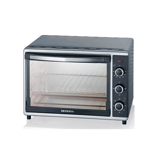 Severin TO2058 grill-bakoven met hete luchtfunctie en praktisch draaispit voor vlees en gevogelte.De TO2058 heeft een 4-standenschakelaar(bovenhitte, onderhitte, bovenhitte en draaispit, boven- en onderhitte met hetelucht)en een120 minuten timer met signaal na bereiden van de ingestelde baktijd.De thermostaat is regelbaar van 60° - 230° Celsius. De bijgeleverde pizzasteen met een doorsneden van 29 cm is ook geschikt voor grote pizza's.Specificaties:- Uitvoering: hittebestendig gelakte behuizing- Aansluitwaarde: 1800 Watt- Vermogen oven: 1800 Watt- Vermogen grill:4 x 450 Watt- Aantal bakplaten: 1- Aantal roosters: 1- Boven- en onderwarmte- Hetelucht functie- Max temperatuur: 230 graden- Min temperatuur: 60 graden- Draaispit- Grillfunctie- Inhoud ovenruimte: 42 liter- Materiaal ovenruimte: RVS - Snel voorverwarmen- Temperatuurregeling- Tijdsinstelling- Type bediening: draaiknoppen- Kleur: zwart-zilver- Garantietermijn: 2 jaarAfmetingen en gewicht:- Afmeting (hxbxd): 36.5x52x42 cm- Binnenmaat (hxbxd): 24x38x33 cm- Gewicht: 8.272 kg