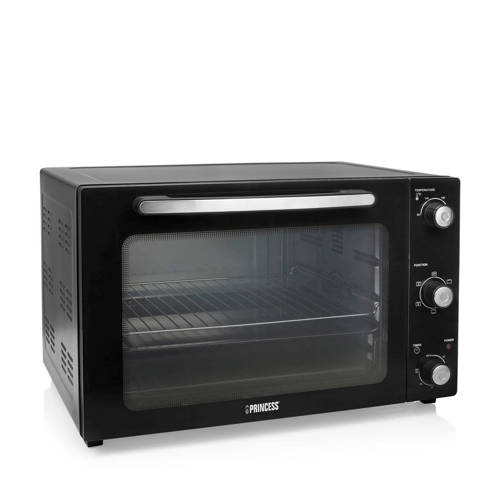 Een oven is onmisbaar in elke keuken! Bak je graag taart, pizza of broodjes? Kies dan voor de Princess 112759 Heteluchtoven. Deze ruime oven heeft een inhoud van 55 liter en heeft 5 verwarmingsfuncties waaronder grillen, hetelucht en boven- en onderwarmte. Inclusief grillrak en bakplaat zodat je direct kan gaan bakken.Temperatuur van 90⁰ tot 230⁰Dankzij de maximale temperatuur van maar liefst 230⁰ is de Princess Heteluchtoven heel geschikt voor het bakken van brood en pizza. De temperatuur kan eenvoudig ingesteld worden met de draaiknop met temperatuuraanduiding. Bij de oven ontvang je een bakplaat en grillrooster zodat je meteen naar hartenlust kan bakken.Instelbare timer tot 60 minutenStel de handige timer in tot maximaal 60 minuten en je hoort een geluidssignaal als de tijd voorbij is. Zo laat je nooit meer eten net te lang in de oven staan met verbrande randen als resultaat. Dankzij de binnenverlichting kan je het bakproces in de gaten houden door de ovendeur.Makkelijk schoon te makenAlle kruimels worden opgevangen in de kruimellade zodat je deze direct na het bakken eenvoudig kan verwijderen en schoonmaken. Geen aangebakken resten meer op de wanden of bodem.