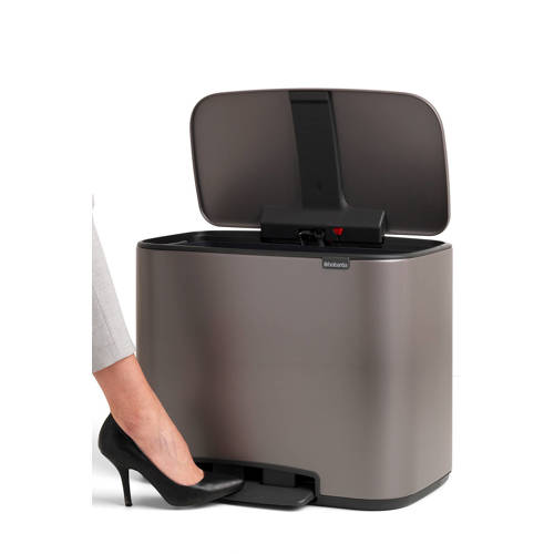 Deze rechthoekige Brabantia Bo pedaalemmer, in de kleur Platinum, met een kunststof binnen emmer heeft een inhoud van 36 liter. Deze mooie pedaalemmer past perfect tegen een muur of (keuken)kast en spaart dus ruimte. Het geurdichte deksel van de Bo opent bij een licht tikje met je voet en blijft open zo lang als je wilt. En daarna sluit het fluisterzacht dankzij de soft-close techniek. De anti-slip bodem beschermt jouw vloer en houdt de afvalemmer op zijn plaats.- Inclusief proefverpakking Brabantia PerfectFit afvalzakken (code R) - gemakkelijk en praktisch onzichtbaar aan te brengen.Bovendien help je met de aanschaf van deze pedaalemmer onze wereld wat schoner te maken want Brabantia gaat plastic uit de wereldse wateren 'vissen'.Voor elke verkochte Bo pedaalemmer, doneert Brabantia namelijk aan The Ocean Cleanup, de grootste schoonmaak uit de geschiedenis. The Ocean Cleanup ontwikkelt vooruitstrevende technieken om de oceanen te zuiveren. De uitvinding van de destijds 17-jarige Boyan Slat verzamelt het afval door middel van een passief systeem van enorm lange, drijvende barrières en die de stroming het werk laat doen. Volgens modelberekeningen kan dit systeem in tien jaar tijd de helft van de Great Pacific Garbage Patch, de plastic soep in de Stille Oceaan, opruimen. Momenteel wordt een prototype van dit systeem getest in de Noordzee'.Specificaties- Perfect voor grotere klussen - deksel blijft open- Ruimtebesparend - past strak tegen een wand of in een hoekje- Makkelijk weggooien zonder knoeien - grote opening- Inhoud: 36 liter- Uitneembare kunststof binnenemmer- Deksel sluit zacht - Superlicht te bedienen pedaal- Reukdichte deksel- Gemakkelijk te reinigen - Anti-slip bodem - beschermt de vloer en houdt de afvalemmer op zijn plaats- Materiaal body: staal- Kleur: Platinum- 10 jaar garantie en serviceAfmetingen en gewicht- Afmetingen (hxbxd) 44x54x36,5 cm- Gewicht: 5,507 kg