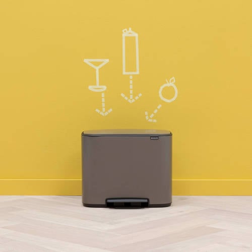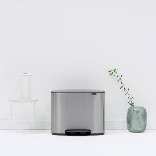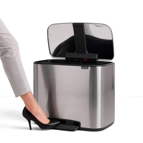 Deze rechthoekige Brabantia Bo pedaalemmer, in de kleur Matt Steel Fingerprint Proof, is voorzien van drie losse binnenemmers met elk een inhoud van van 11 liter. Hierdoor kun jij jouw afval direct aan de bron scheiden. Deze mooie pedaalemmer past perfect tegen een muur of (keuken)kast en spaart dus ruimte. Het geurdichte deksel van de Bo opent bij een licht tikje met je voet en blijft open zo lang als je wilt. En daarna sluit het fluisterzacht dankzij de soft-close techniek. De anti-slip bodem beschermt jouw vloer en houdt de afvalemmer op zijn plaats.- Inclusief proefverpakkingen Brabantia PerfectFit afvalzakken (code X) - gemakkelijk en praktisch onzichtbaar aan te brengen.Bovendien help je met de aanschaf van deze pedaalemmer onze wereld wat schoner te maken want Brabantia gaat plastic uit de wereldse wateren 'vissen'.Voor elke verkochte Bo pedaalemmer, doneert Brabantia namelijk aan The Ocean Cleanup, de grootste schoonmaak uit de geschiedenis. The Ocean Cleanup ontwikkelt vooruitstrevende technieken om de oceanen te zuiveren. De uitvinding van de destijds 17-jarige Boyan Slat verzamelt het afval door middel van een passief systeem van enorm lange, drijvende barrières en die de stroming het werk laat doen. Volgens modelberekeningen kan dit systeem in tien jaar tijd de helft van de Great Pacific Garbage Patch, de plastic soep in de Stille Oceaan, opruimen. Momenteel wordt een prototype van dit systeem getest in de Noordzee'.Specificaties- Perfect voor grotere klussen - deksel blijft open- Ruimtebesparend - past strak tegen een wand of in een hoekje- Makkelijk weggooien zonder knoeien - grote opening- 3 uitneembare kunststof binnenemmers van elk 11 liter - ideaal voor afval scheiden- Deksel sluit zacht - Superlicht te bedienen pedaal- Reukdichte deksel- Gemakkelijk te reinigen - Anti-slip bodem - beschermt de vloer en houdt de afvalemmer op zijn plaats- Materiaal body: staal- Kleur: Matt Steel Fingerprint Proof- 10 jaar garantie en serviceAfmetingen en gewicht- Afmetingen (hxbxd) 44x54x36,5 cm- Gewicht: 5,544 kg• Inhoud per onderdeel: 3x11