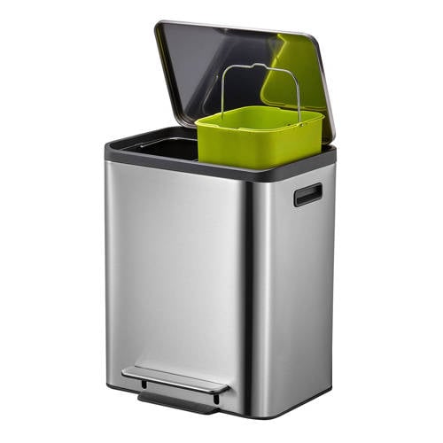 De EKO EcoCasa Step Bin is een rechthoekige pedaalemmer van geborsteld RVS met fingerprint proof coating en handige kunststof handgrepen. De pedaalemmer is voorzien van gedempt sluitend deksel en 2 kunststof binnenemmers met een inhoud van 2 x 15 liter zodat jij jouw afval makkelijk kunt scheiden. De stay-open functie vergrendelt het deksel, voor het makkelijk schoonmaken van de afvalbak of wisselen van de afvalzak.Specificaties- Inhoud: 2 x 15 liter- Inner Line- Fingerprintproof- Soft Close- Stay Open- Plastic zak fixer- Kleur: mat rvs- Garantietermijn: 3 jaarAfmetingen en gewicht- Afmetingen(hxbxd): 49.2x32.1x40.4 cm- Gewicht: 5.06 kg• Inhoud per onderdeel: 32 (2x16)