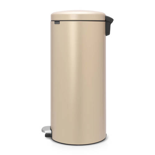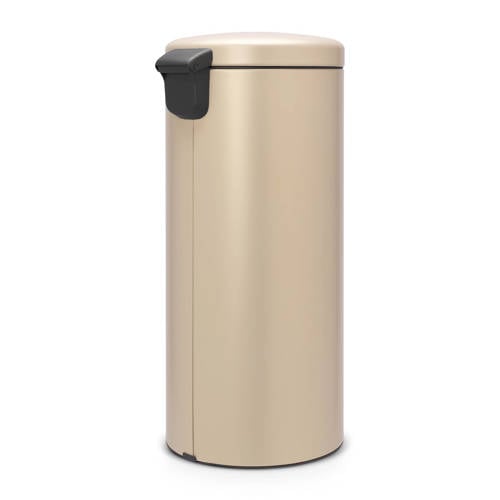 Deze hoge Brabantia newIcon Sense of Luxury pedaalemmer, voorzien van een prachtige structuurlak in de kleur Mineral Golden Beach, met een kunststof binnen emmer en een RVS pedaal, heeft een inhoud van 30 liter. Dankzij de anti-slip onderkant en anti-kantel blok is deze pedaalemmer stevig en staat altijd op zijn post. Deze newIcon pedaalemmer is geurdicht, makkelijk te openen, makkelijk te verplaatsen en makkelijk schoon te maken. Dankzij de unieke soft-closure techniek sluit het deksel soepel en stil en kun je eenvoudig afval weggooien zonder te morsen dankzij de grote inwerpopening. De pedaalemmer biedt je genoeg ruimte voor jouw afval terwijl hij perfect onder jouw aanrecht past. De pedaalemmer wordt geleverd met een proefverpakking van Brabantia PerfectFit afvalzakken (code G), deze zijn gemakkelijk en praktisch onzichtbaar aan te brengen.Bovendien help je met de aanschaf van deze pedaalemmer onze wereld wat schoner te maken want Brabantia gaat plastic uit de wereldse wateren 'vissen'.Voor elke verkochte newIcon pedaalemmer, doneert Brabantia namelijk aan The Ocean Cleanup, de grootste schoonmaak uit de geschiedenis. The Ocean Cleanup ontwikkelt vooruitstrevende technieken om de oceanen te zuiveren. De uitvinding van de destijds 17-jarige Boyan Slat verzamelt het afval door middel van een passief systeem van enorm lange, drijvende barrières en die de stroming het werk laat doen. Volgens modelberekeningen kan dit systeem in tien jaar tijd de helft van de Great Pacific Garbage Patch, de plastic soep in de Stille Oceaan, opruimen. Momenteel wordt een prototype van dit systeem getest in de Noordzee'.Specificaties- Inhoud: 30 liter- Deksel sluit geruisloos - Superlicht te bedienen pedaal- Reukdichte deksel- Gemakkelijk te reinigen - Uitneembare kunststof binnen emmer- Anti-slip bodem - Handgreep in dekselscharnier- Materiaal body: metaal- Kleur: Mineral Golden Beach- 10 jaar garantie en serviceAfmetingen en gewicht- Afmetingen (hxbxd) 67,9x29,3x38 cm- Gewicht: 4 kg