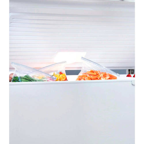 Minder vorming van ijs en rijp. Minder vaak ontdooienDe diepvrieskist maakt gebruik van de LowFrost-technologie om de vorming van rijp en ijs te minimaliseren met behulp van verborgen koelcircuits die ontdooien gemakkelijker én minder vaak nodig maken.LowFrost maakt ontdooien gemakkelijker en minder vaak nodigEfficiënte diepvrieskist met geavanceerde Low Frost-technologie die ontdooien gemakkelijker en minder vaak nodig maakt door het gebruik van verborgen koelcircuits die de vorming van rijp en ijs tot een minimum beperken.Efficiënter, geruislozer, stabieler. Inverter compressorVergeleken met normale compressoren past de inverter compressor zich voortdurend aan om de prestaties van de koelkast te optimaliseren. De koeling is dus gelijkmatiger en efficiënter. Het energieverbruik en het geluid worden beperkt, terwijl de temperaturen stabiel blijven.Vijf jaar garantie, maximale gemoedsrustVoor jouw gemoedsrust, wordt de compressor geleverd met vijf jaar garantie, die de arbeidskosten, transportkosten, kosten voor het verwijderen en bijvullen van gas, algemeen onderhoud en servicekosten dekt.Beheer functies en temperatuur met de elektronische regelingDe elektronische regeling biedt de mogelijkheid om de temperatuur en andere bewaarfuncties nauwkeurig aan te passen. Deze efficiënte diepvrieskist geeft u ook direct informatie over uw aanpassingen via het digitale bedieningspaneel.LED-lampen verlichten elke hoekDe ingebouwde LED-verlichting zorgt voor een discreet, zacht licht dat gelijkmatig over de hele ruimte schijnt. Bovendien zijn LED-lampen kleiner en energiezuiniger dan standaardlampen - een duurzamere oplossing.