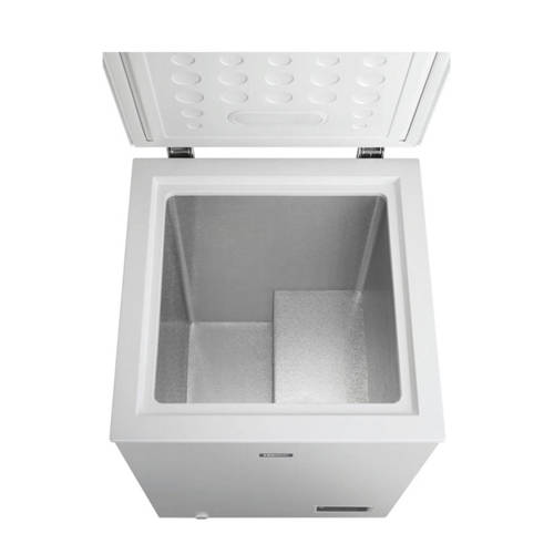 Thomson TCH 151E vrieskist. Kook je graag in grote hoeveelheden en bewaar je maaltijden voor later, hou je van ijs en ander lekkers dat ingevroren moet blijven of vind je het zonde om restjes weg te gooien, dan is de Thomson vrieskist TCH 151 E je op het lijf geschreven. Deze grote vrieskist met een inhoud van niet minder dan 146 liter is ideaal om al je etenswaren in op te bergen die je langere tijd wil bewaren. Dankzij de grote netto capaciteit van het toestel kun je niet enkel veel voeding bewaren, het kan ook allemaal geordend en gestructureerd. Een vrieskist is de manier bij uitstek wanneer je graag wat maaltijden in huis hebt die je op ieder gewenst moment kunt uithalen wanneer je niet de tijd hebt om te koken. Met de Thomson vrieskist TCH 151 E ben je er bovendien 100% zeker van dat de voedingswaren op een correcte manier bewaard worden. De vriezer is enerzijds uitgerust met een optimale klimaatbeheersing en anderzijds met een elektronische controle en alarmsysteem. Zodra de temperatuur abnormaal stijgt, worden alarmgeluiden afgespeeld zodat je weet dat je in actie moet komen. Naast praktisch is de Thomson vrieskist TCH 151 E ook zuinig. Hij valt binnen een A+ energie-efficiëntieklasse en verbruikt slechts 160 kWu per jaar. Dit is behoorlijk laag wanneer je bedenkt dat hij een vriescapaciteit van 6,5 kilo per 24 uur heeft. Bovendien is het geluidsniveau van de vrieskist amper 41 dB waardoor hij gerust stil genoemd kan worden. Je plaatst hem in de berging zodat hij niet in de weg staat, maar wat betreft het geluid geeft hij in de keuken evenmin overlast. Zoals gezegd is de Thomson vrieskist TCH 151 E niet van een kleintje vervaardigd. Met afmetingen van 85 cm hoog, 73 cm breed en 52,3 cm diep dien je voldoende ruimte te voorzien in huis om de vrieskist te plaatsen. Aan de binnenzijde is een extra mandje voorzien waarin je kleinere porties kunt opbergen of maaltijden die je binnenkort denkt te gebruiken. Zo heb je alles snel bij de hand.