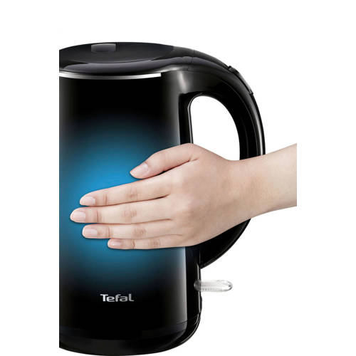 Zet zonder zorgen heerlijke thee: de dubbele wand van deze geïsoleerde waterkoker creëert een hittebarrière, zodat je de waterkoker veilig kunt aanraken zonder je handen te branden.Dubbele wandDe snoerloze Safe'Tea waterkoker beschermt je handen tegen de hitte van het kokende water door middel van eendubbele isolatiewand. Debuitenlaag van kunststofgeleidt geen warmte, zodat je de waterkoker gewoon vast kunt pakken. De binnenkant van de waterkoker is gemaakt vanroestvrij staalen houdt het water langdurig warm. Zet volledig veilig thee voor het hele gezin en al je vrienden met deze elektrische Safe To Touch waterkoker!