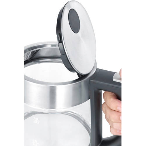 Deze AEGEWA3300 waterkoker uit de ‘Perfect Morning Ontbijt set 3-serie’, heeft een vermogen van2200 Watt en een inhoud van 1,7 liter. De knop voor het openen van het deksel is handig op de bovenkant van het handvat geplaatst waardoor je het deksel open kunt maken terwijl je de ketel vasthoudt. De automatische uitschakeling zorgt ervoor dat het koken stopt zodra de temperatuur 100 graden is of wanneer de ketel leeg is.Specificaties- Inhoud: 1,75 liter- Vermogen: 2200 Watt- Waterniveauweergave aan 2 kanten - Automatische afslag - Kalkfilter - Droogkookbeveiliging - Gesloten verwarmingselement- Snoeropberging- 360 graden draaibaar - Snoerloos- Kleur: zwart- Garantietermijn: 2 jaarAfmeting en gewicht - Afmeting (hxbxd):24x16,5x25,5 cm- Gewicht: 1,17 kgInhoud verpakking:- Waterkoker- Handleiding
