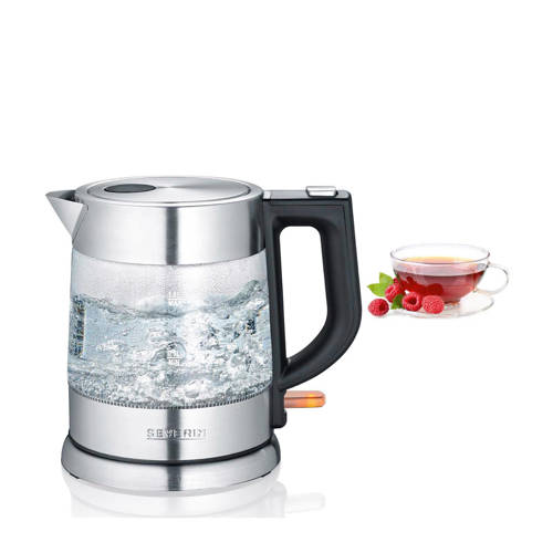 Deze Severin WK3468 waterkoker heeft een vermogen van 2200 Watt en een inhoud van 1 liter. De waterkoker heeft een glazen middenstuk, waardoor je in een oogopslag kunt zien hoeveel water er nog in de koker zit. Bovendien kun je ook het water zien koken, wat er visueel ook enorm leuk uitziet. Verder is deze kleine draadloze waterkoker voorzien van een waterniveau indicator, een oververhittingsbeveiliging, een anti-slipvoetjes en een automatische uitschakeling.Afmetingen en gewicht- Snoerlengte; 75 cm- Afmetingen (bxhxd): 14x19x20 cm- Gewicht: 1285 gram