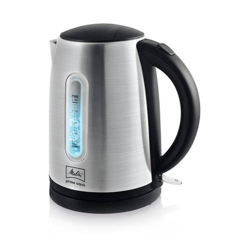 De Melitta Prime Aqua is een RVS waterkoker met een inhoud van 1,7 liter en een vermogen van 2200 Watt. Je kunt de klapdeksel met één hand bediend en de waterkoker heeft een grote opening voor handige reiniging. Zodra je de waterkoker van de basis haalt schakelt het automatisch uit. De blauwe verlichting geeft aan dat de Prime Aqua in gebruik is. Via de doorzichtige waterpeilaanduiding kan je het water zien koken. Afmetingen (hxbxd): 25x22,5x16,2 cm