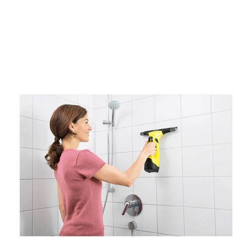 Kärcher WV5 Premium Non-stopYelllow ruitenreiniger, waarmee je zonder moeite streeploos je ramen kunt wassen. En nu kun je continue non stop reinigen dankzij de langere looptijd en het laadstation inclusief vervangaccu. Je kunt tijd besparen door je ramen voortaan schoon te maken met de snoerloze Kärcher WV 5 Premium Non-stop Yellow, de wisser die vloeistoffen opzuigt en een streeploze glans achter laat. Dankzij het aangebrachte rolsysteem is het reinigen in de hoeken van de ramen geen probleem meer. Verder voorzien van een soft handgrip, een verwisselbare accu en een aanduiding voor de energiestatus.Merkbaar sneller en makkelijkerJe kunt met de Kärcher WV 5 Premium Non-stop Yellow ruitenreiniger niet alleen ramen schoonmaken, maar ook vrijwel alle gladde oppervlakken. En hij werkt merkbaar sneller en gemakkelijker dan de traditionele wisser met zeem. Bovendien is hij snoerloos, en dat maakt hem natuurlijk bijzonder gebruiksvriendelijk. Met de Kärcher WV 5 Premium Non-stop Yellow beschik je over een pakket waarmee je de schoonmaakklus van A tot Z uitvoert: de snoerloze Window Vac, een sproeifles, een microvezeldoek en een krachtig schoonmaakmiddel voor de ramen.Zo doe je het- Stap 1: sproeienBevochtig eerst het oppervlak met je schoonmaakmiddel. Dat gaat het makkelijkst met de sproeifles die wordt meegeleverd.- Stap 2: schoonmakenMaak nu het raam schoon met de microvezeldoek op de veger, die op de sproeifles is bevestigd.- Stap 3: afwerkenTot slot zuig je in één enkele beweging het vuile water van het oppervlak met de snoerloze Window Vac.Specificaties:- Vuilwatertank: 100 ml- Werktijd met 1 batterijlading: 35 minuten- Laadtijd: ± 3 uur(compleet met lader)- Accu Li-Ion- Vermogen 3.7 volt- Geluidsniveau 50 dB- Schoonmaakcapaciteit ± 210 m2 (± 70 ramen)- Werkbreedte van de zuigstrip: 280 mm- Afmeting: 32,5x28x12,5 cm- Gewicht inclusief batterij: 700 gram