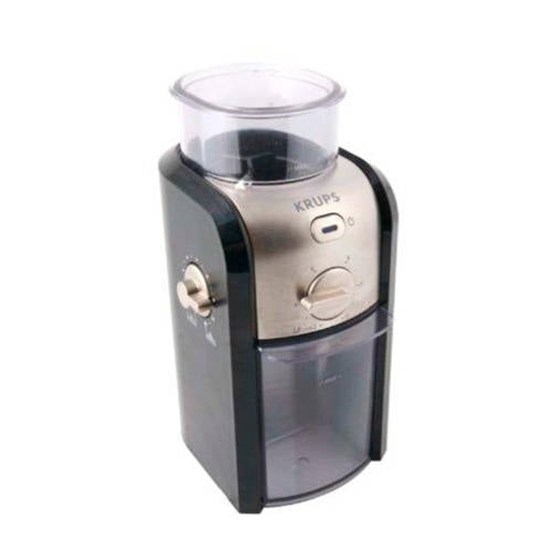 Deze Krups koffiemolen GVX24 elektrische koffiemolen heeft een vermogen van 100 Watt en maalt tot 200 gram koffie per keer. Kies uit 17 verschillende instellingen, van zeer fijn tot grof, om koffiebonen perfect te vermalen voor elke specifieke brouwmethode; geniet van perfecte resultaten bij elk koffiedrankje. De Krups koffiemolen GVX24alleen met een gesloten deksel. De combinatie van een uitneembare braam, een makkelijk schoon te maken bedieningspaneel van geborsteld roestvrij staal en een speciaal schoonmaakborsteltje, verzekert je van een eenvoudig, praktisch schoonmaakproces; ideaal voor dagelijks gebruik!Specificaties:- Vermogen: 100 Watt- Inhoud bonenreservoir: 200 gram- Uitneembare braam- 17 verschillende instellingen - Kleur: RVS/zwart- Garantietermijn: 2 jaarAfmetingen en gewicht:- Afmetingen: (hxbxd) 28x20x16 cm- Gewicht: 1,84 kg