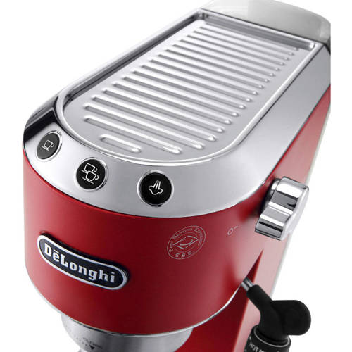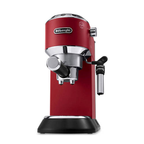 De DeLonghi Dedica EC685.R, in de kleur rood, is een compacte espressomachine van slechts 15 cm breed. De EC685.R is gebruiksklaar in slechts 40 seconden en het thermoblock zorgt ervoor dat jouw espresso wordt bereidt met een ideale en constante temperatuur. De Dedicaheeft een pompdruk van 15 bar en een transparant, uitneembaar waterreservoir van 1 liter, een uitneembaar lekbakje, een kopjeshouder voor kopjes en glazen tot 12 cm. Filterhouder met 3 verschilllende filterhoudersDe Dedica wordt geleverd met 3 verschillende filterhouders.- Filter 1: voor 1 kopje espresso met gemalen koffie- Filter 2: voor 2 kopjes espresso met gemalen koffie- Filter 3: voor 1 kopje met ESE-servingCappuccinosysteemHet cappuccinosysteem met variabel stoompijpje mengt, stoom, water en lucht en zorgt zo voor een heerlijke cappuccino met een rijke melkschuimlaag.Warmhoudplaat voor kopjesDankzij deze plaat kun je jouw kopjes alvast voorverwarmen zodat ze optimaal op temperatuur zijn.Specificaties- Pompdruk 15 bar- Aantal kopjes per keer: 1 of 2 kopjes- Systeem: cappuccinosysteem met stoompijpje- Geschikt voor gemalen espressokoffie en ESE-servings- Mogelijkheid om heet water af te tappen via stoompijpje- Programmeerbare koffiehoeveelheid- Gebruiksklaar in 40 seconden- Inhoud waterreservoir : 1 liter- Aantal uitlooppijpjes: 2- Eenvoudig bedieningspaneel met 3 verlichte knoppen- Controlelampje voor ontkalken- Warmhoudplaat kopjes- Druppelstop- Stand-bystand- Kleur:rood- Garantietermijn: 2 jaarAfmetingen en gewicht- Afmetingen (hxbxd): 35x14.9x30.5 cm- Gewicht: 4 kg