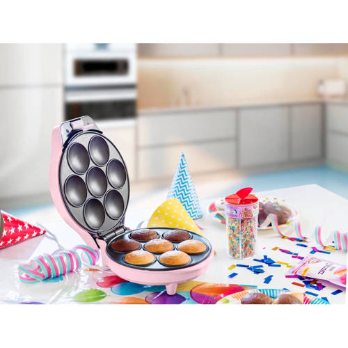 Bestron ACC217P CupCake maker bakt 7 cupcakes in luttele minuten. DeCupCake maker is te gebruiken bij feestgelegenheiden zoals verjaardagen, kinderfeestjes of zomaar. Specificaties:- Vermogen: 700 Watt- Antislipvoetjes- Max aantal cakes: 7- Ook voor het bereiden van muffins, bladerdeeghapjes, pasteitjes, minitaartjes etc.- Kies uw eigen zoete of hartige vulling voor uw favoriete recept- Hittebestendige kunststof behuizing- Hoogwaardige bakplaten met antiaanbaklaag- Met indicatielampjes voor Power en Gereed-voor-gebruik- Eenvoudig te reinigen - Plaatsbesparende verticale opberging en praktisch snoeropwikkelsysteem