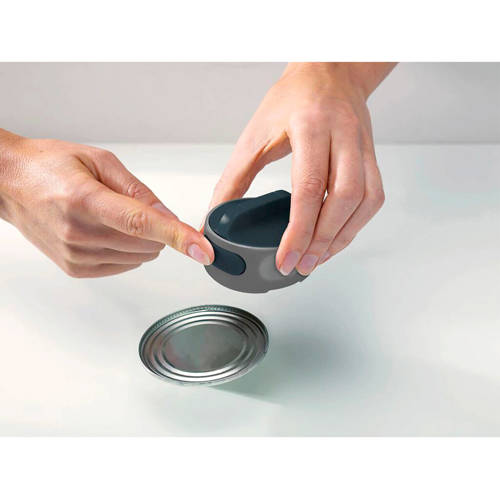 Een blikopener is iets wat je niet mag missen in je keuken. De blikopener van Joseph Joseph maakt het openen van blikken nog makkelijker. Je plaatst de opener op het blik, draait de knop aan de bovenkant en wanneer je de deksel los wilt laten boven de vuilbak druk je op de knop aan de zijkant. Iedereen heeft zich waarschijnlijk wel eens gesneden aan de scherpe rand van een geopend blik. met deze opener zal dat je niet zomaar meer gebeuren! Nog een voordeel aan deze blikopener is dat hij erg compact is door een diameter van 5.2 centimeter. De blikopener is makkelijk schoon te maken door er een vochtige doek overheen te halen. Kortom: de perfecte keukenhulp voor elk huishouden.