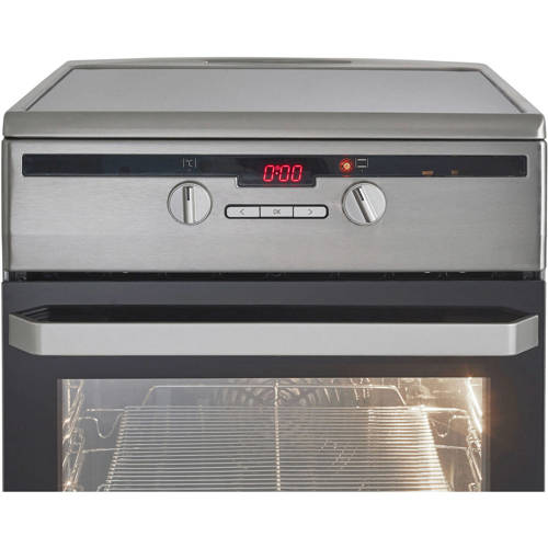 Dit vrijstaande Inventum inductiefornuis VFI5042RVS, met energieklasse A, heeft 4 kookzones en een multifunctionele oven met een inhoud van 65 liter. De vier inductie kookzones zijn door middel van 9 kookstanden (inclusief boost) te bedienen en deze zijn voorzien van een restwarmte indicatie. De High-speed keramisch glazen kookplaat is eenvoudig schoon te houden. De VFI5042RVS heeft een multifunctioneel ovensysteem: onder- en bovenwarmte, onderwarmte, , onderwarmte en bovenwarmte en ventilator, hetelucht, eco hetelucht, turbo hetelucht, snel verwarmen, ontdooien, grill, supergrill en ventilator en supergrill. De oven is verder voorzien met oventimer, binnenverlichting, een klepdeur met 3 dubbel glas, binnenzijde met easy clean emaille. Een ovenrooster en bakplaat wordt meegeleverd. Het kookgedeelte kent voor elke zone een timer met kookwekkerfunctie, boostfunctie, restwarmte indicatie, automatische panherkenning, warmhoudfunctie, kookduurbegrenzing en aankookautomaat. Verder wordt de kookplaat bediend door een centrale tiptoetsbediening en is voorzien van een kinderbeveiliging. Elke kookzone zal automatisch uitgeschakeld worden na een gedefinieerde maximum kookduur als het vermogen niet is gewijzigd. De maximale kookduur is afhankelijk van het geselecteerde vermogen.AansluitenOm dit elektrische fornuis correct aan te sluiten moet je beschikken over een 3-fase aansluiting. Dat is dus niet de standaard aansluiting van 220 volt. Het fornuis wordt zonder stekker geleverd. Wij kunnen dit fornuis niet voorje aansluiten. Verzekeringsmaatschappijen eisen dat een erkende installateur de aansluiting verzorgt.Met o.a.:- High-speed keramisch glas- 4 kookzone ’s- Zone linksvoor Ø 210 mm / 2,0 - 2,8 kW - Zone linksachter Ø 160 mm / 1,2 - 1,4 kW - Zone rechtsvoor Ø 160 mm / 1,2 - 1,4 kW - Zone rechtsachter Ø 160 mm / 1,2 - 1,4 kW- Aantal standen per zone 9 - Boostfunctie op alle zones ja - Tiptoetsbediening centraal - Digitaal LED display ja - Timer met kookwekkerfunctie apart per zone - Restwarmte indicatie ja - Aankookautomaat ja - Warmhoudfunctie ja - Kookduurbegrenzing ja - Automatische panherkenning ja - Maximale temperatuur oven: 250ºC- Netbelasing: 10100 Watt- Geleiderail ja - Regelbare temperatuur tot 250 °C - Bakplaat, ovenrooster en opberglade jaAfmetingen- Fornuis (hxbxd) 85x50x60 cm- Binnenzijde oven: 37,5x43,5x40 cm