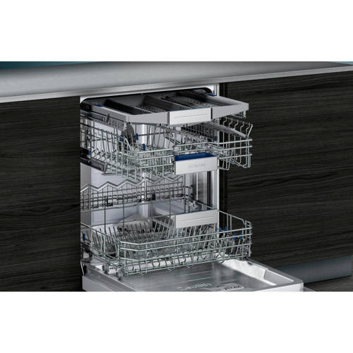 Luxe afwassen met de Siemens SN678X36UE.Deze zuinige vaatwasser valt onder energieklasse A+++ en is buitengewoon zuinig met water. De onverslijtbare iQdrive-motor is zeer efficiënt, zuinig, stil en duurzaam. Hij is fluisterstil en voorzien van snelle programma's.Design en bedieningDat de Siemens SN678X36UE een luxe vaatwasser is, begint bij het strakke design. De SN678X36UE is een ingebouwd model, geschikt voor 13 couverts. Bij het openen van de deur wordt de vaatwasser mooi verlicht door LED verlichting, die dooft zodra je de vaatwasser sluit. Het bedieningspaneel van deze vaatwasser zit aan de bovenzijde van de deur. Uniek aan de Siemens SN678X36UE is de TimeLight weergave op de vloer. Met een lichtprojectie op je keukenvloer zie je hoe lang de vaat nog duurt.Inruimen en programma'sHet begint al met comfortabel inruimen. Je kan de bovenkorf met een ergonomische hendel in drie standen verstellen. Zo kan je moeiteloos je lange glazen bovenin, of je pizzaborden onderin opbergen. Tijd om af te wassen. Kies uit de volgende programma’s:- Auto 45-65 graden- Economy- Glass/delicate- Intensief- Nacht- Voorwas- Snel- StilZoals je ziet zijn er maar liefst twee extra stille programma’s (nacht en stil) en je kunt de programma’s altijd verkorten met de varioSpeed Plus functie. Met varioSpeed Plus wordt de afwastijd tot 66% verkort, terwijl het resultaat net zo schoon is!Zuinig door de iQdrive-motor en het Zeolith droogsysteem.Twee Siemens technologieën die zorgen voor het beste resultaat, zijn de iQdrive-motor en het Zeolith droogsysteem. De iQdrive-motor van de Siemens SN678X36UE werkt zonder borstels en slijt nauwelijks. Daarbij maakt hij weinig geluid en is hij snel. Het Zeolith droogsysteem absorbeert vocht en zet het om in warmte met het mineraal zeoliet. Je vaat kan zo sneller en zuiniger drogen!