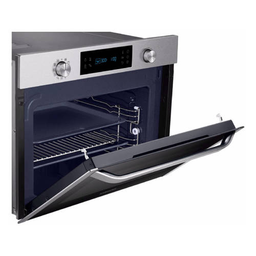 Deze Samsung inbouw magnetron NQ50J3530BS/EF heeft een inhoud van 50 liter zodat je voldoende ruimte hebt voor meerdere of grotere gerechten hebt. De bediening op het LED display met Iceblue leds is bijzonder eenvoudig via de aanwezige draaiknoppen. En je waant je een topkok als uit Autocook één van de 25 voorgeïnstalleerde recepten hebt geselecteerd. Je wordt “aan de hand genomen” bij het hele kookproces en je krijgt instructies op het scherm inclusief de beste instellingen. Gemak dient de mens nietwaar? En de klepdeur die voorzien is van een veiligheidsscharnier en kinderslot gaat beheerst en veilig dicht. De deur stopt automatisch op een vooraf ingestelde stand. Zo voorkom je dat de deur dichtklapt, veel geluid maakt of ongelukken veroorzaakt.Schoonmaken van de magnetronDeze magnetron is voorzien van antibacteriële keramische binnenwanden die zorgen voor meer hygiëne. Het is bovendien roest- en krasbestendig en door het gladde oppervlak eenvoudig schoon te houden. En de Steam Clean-stoom reinigingsfunctie maakt het verwijderen van hardnekkige vlekken en voedselresten eenvoudig. Vul het bakje in de oven met water en neem het vuil met een doekje af.Specificaties:- Vermogen magnetron: 800 watt- Vermogen grill: 2500 watt- Vermogen hete lucht: 2500 watt- Maximum temperatuur oven 230 °C- Aantal automatische programma's 25- Aantal vermogensstanden: 7- Type bediening: elektronisch (draaiknop)- Antibacteriële keramische binnenwanden- Binnenverlichting Ja- Kastinhoud: 50 liter- Aansluitwaarde: 2400 WAfmeting en gewicht- Afmeting (hxbxd): 45,4x59,5x57 cm- Nismaat (hxbxd): 45x56,8x55 cm- Gewicht: 38,3 kg
