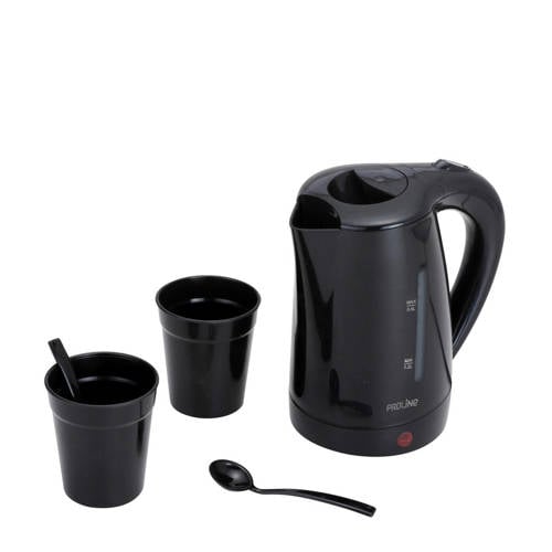 Deze compacte Proline KLT06 waterkoker heeft een vermogen van 1100 Watt en een watercapatiteit van 0,5 liter. Handig als je niet meer nodig bent, of op de camping. Materiaal behuizing: Kunststof
