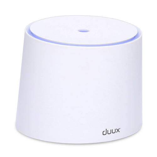 Met deze Duux DXAD01 conic Aroma Diffuser maak je van je woonkamer een wellness omgeving. De heerlijke aroma's worden door de woonkamer verspreid. De diffeser heeft een mooi design en een LED sfeerverlichting via ring aan de bovenkant, Waterreservoir met een capaciteit van 100ml en een Touch bediening: verander gemakkelijk de instellingen.- Geschikt voor ruimtes tot 100 m3- Afmetingen: 13 x 13 x 10 cm- Gewicht: 0,3 kg- Geluidsniveau: - Stroomverbruik : 15 Watt- Inhoud waterreservoir: 170 ml- LED sfeerverlichting- Automatische uitschakeling- Capacitive touch bediening- Ultrasone technologie- Max. neveluitstoot : 30 ml/uur- Max. gebruikstijd : 12 uur