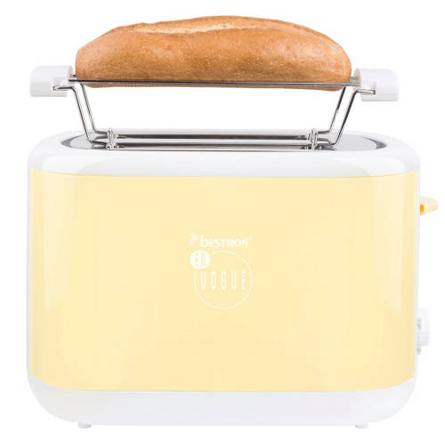 Dit Bestron ATS300EVV broodrooster, in de kleur vanille uit de ‘En Vogue’ serie,is geschikt voor 2 sneetjes brood. De ATS300EVV is voorzien van een automatisch uitwerpmechanisme, een instelbare bruining graad, een ontdooifunctie met controle lampje, een reheat-functie met controlelampje, een uitneembare kruimellade en een broodjesopzet.En VogueDe ‘En Vogue’ designserie is speciaal voor Bestron ontworpen door de internationale designer, Thomas Rath. In deze serie laat Thomas Haute Couture samen gaan met Haute Cuisine waardoor er een design van topklasse in pasteltinten is ontstaan.Specificaties- Vermogen: 930 Watt- Aantal sneden: 2- Temperatuurregeling- Automatische broodcentrering- Automatisch uitwerpmechanisme- Instelbare bruiningsgraad- Hoogwaardige kunststof behuizing- Koele wand- Kruimellade- Ontdooifunctie- Opwarmfunctie- Opzethouder voor broodjes- Anti-slip voetjes- Kleur: vanille- Garantietermijn: 2 jaarAfmetingen en gewicht- Afmetingen (hxbxd): 23,5x27,3x16,5 cm- Gewicht: 1,23 kgInhoud verpakking- Toaster- Handleiding