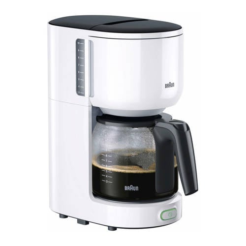 Dit Braun KF3120WH PurEase koffiezetapparaat in de kleur wit en met een vermogen van 1000 Watt,heeft een waterreservoir met een inhoud van 1250 ml wat goed is voor 10 kopjes koffie per zetbeurt.Verder heeft deze koffiezetter een Optibrew systeem voor een optimale afstemming tussen temperatuur, doorlooptijd en extractie. DeKF3120WH PurEase is voorzien van een auto-off functie waardoor de machine na40 minuten automatisch uitschakelt.Specificaties:- Vermogen: 1100 Watt- Druppelstop- Inhoud waterreservoir: 1250 ml- Waterpeil indicator- Afneembare filterhouder - Filtermaat: 4- Waterfilter- Anti-slip voetjes- Druppelstop- Aantal kopjes: 10- Glazen koffiekan- Auto-off functie: 40 minuten- Vaatwasserbestendige onderdelen- Kleur: wit- Garantietermijn 2 jaarAfmetingen en gewicht- Afmetingen (hxbxd) 36x20x20 cm- Gewicht: 3,2 kg